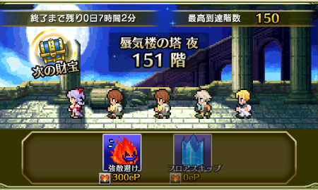 夜の部150階分のepは1000ジェム+毎日フレンド全員連れ出しで捻出できました